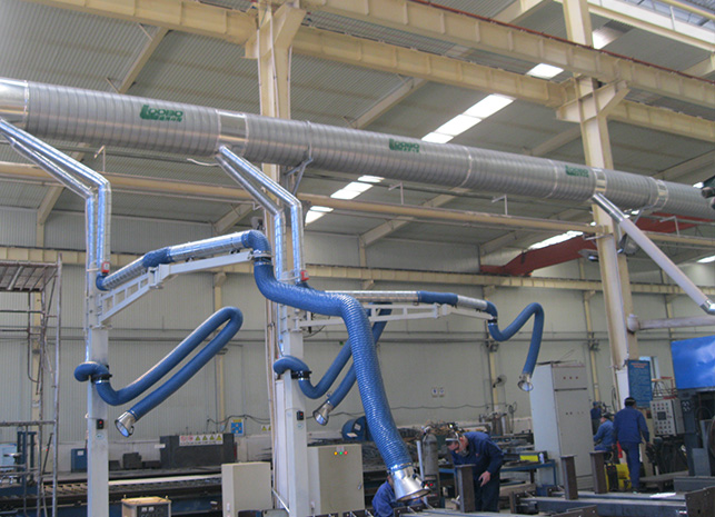 5、柔性吸氣臂可與固定式管路系統(tǒng)或者除塵器設(shè)備配套使用,能適應(yīng)各類粉塵、廢氣等復(fù)雜工況的收集凈化。
